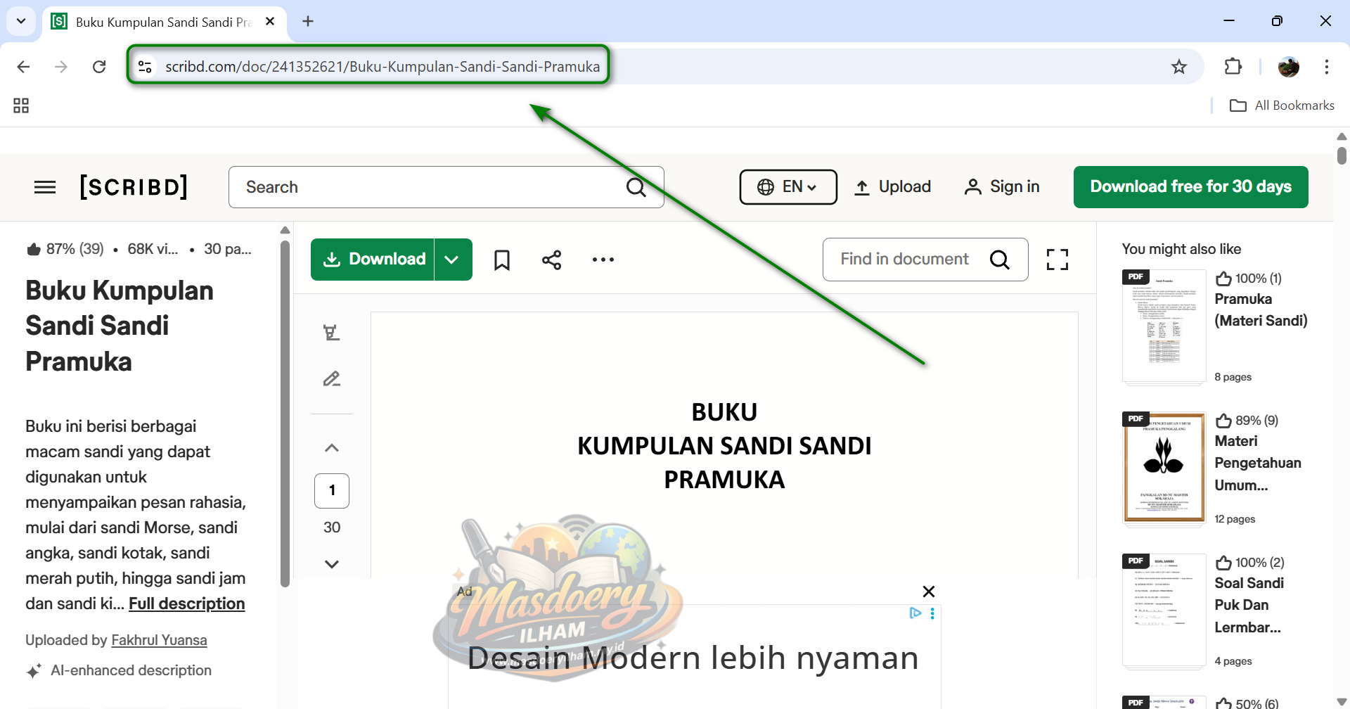 Pastinya kita sering mencari sebuah file atau berkas dan muncul pada halaman scribd yang mana situs tersebut tidak bisa di download bahkan akan muncul iklan saat kita baru membaca beberapa halaman. dan juga saat kita ingin mendownload file nya harus mendaftar dan berlangganan yang pastinya sedikit ribet juga.