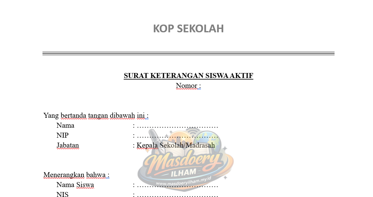 Surat Keterangan Aktif Siswa biasanya digunakan untuk menerangkan bahwa siswa tersebut memang masih terdaftar dan aktif mengikuti kegiatan belajar mengajar di sekolah pada satuan pendidikan.
